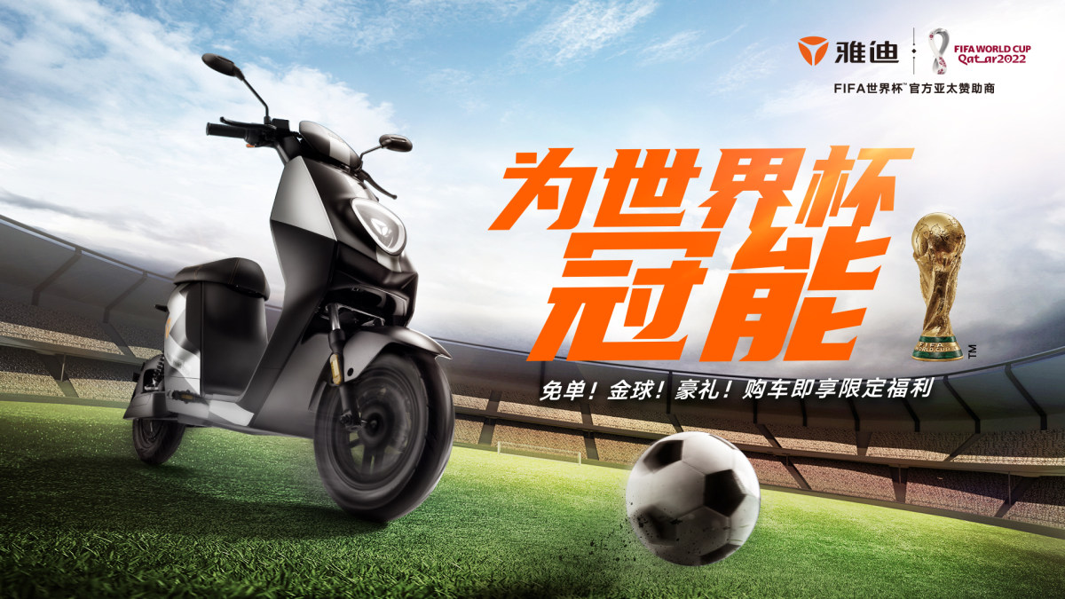 经过15年的全球化深耕,雅迪连续5年全球销量第一,2021年全球销量更是达到1386万辆,成为当之无愧的两轮电动车第一品牌。截至目前,雅迪拥有全球超6000万用户,全球经销网点超40000家。此次雅迪再次“征战”世界杯,通过与国际顶级体育赛事深度绑定,向全世界展示中国智造魅力,打造行业出海范本。面向未来,雅迪将秉承“让亿万人享受美好出行”的新使命,为全球的绿色、智慧出行贡献中国力量。