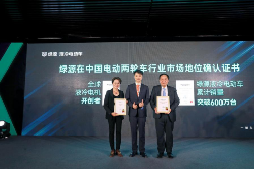 此次技术探享会上,全球著名增长咨询公司弗若斯特沙利文(Frost& Sullivan,简称“沙利文”)还为绿源颁发了“全球液冷电机开创者”和“绿源液冷电动车累计销量600万台”的双重认证。身为两轮电动车行业中的一员,获此认证再次证明绿源在技术上具有绝对领先优势,堪为行业技术领袖,而600万台的销量更是25年来绿源潜心研发技术的最终成果体现。